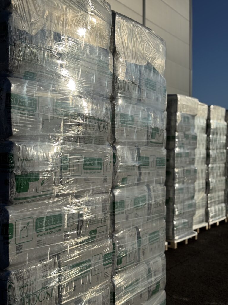 Isoleringen utförs med modern lösullsutrustning som gör att materialet kan appliceras snabbt, jämnt och exakt under byggprocessen. Det skapar ett tätt och enhetligt isolerskikt som minimerar köldbryggor och ger byggnaden goda förutsättningar för låg energiförbrukning och ett stabilt inomhusklimat.