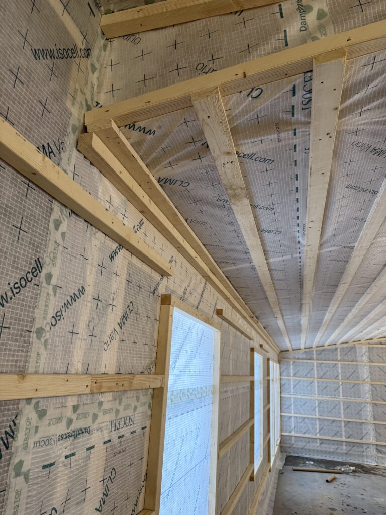 Vi inleder med att gå igenom ritningar, konstruktion och projektets energikrav för att säkerställa rätt lösning från start. Utifrån byggnadens utformning tar vi fram ett tydligt upplägg för byggisoleringen, anpassat för nyproduktionens olika delar såsom vind, väggar och bjälklag.